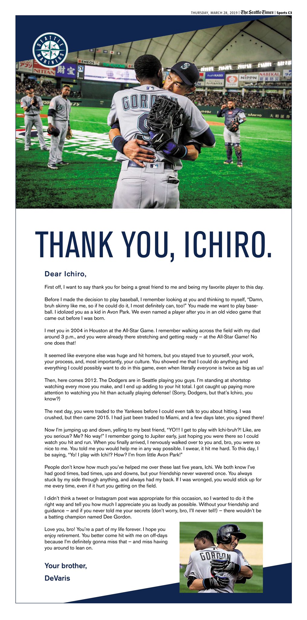 Seattle Times Sports On Twitter Thank You Ichiro Dee Gordon S Full Page Ad In Today S Seattle Times Https T Co 7fscufwkmx Twitter